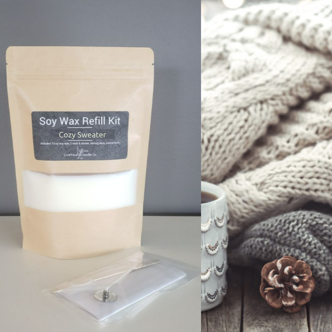 Kits will refill any small candle jar or mason jar. Included in the kit is: