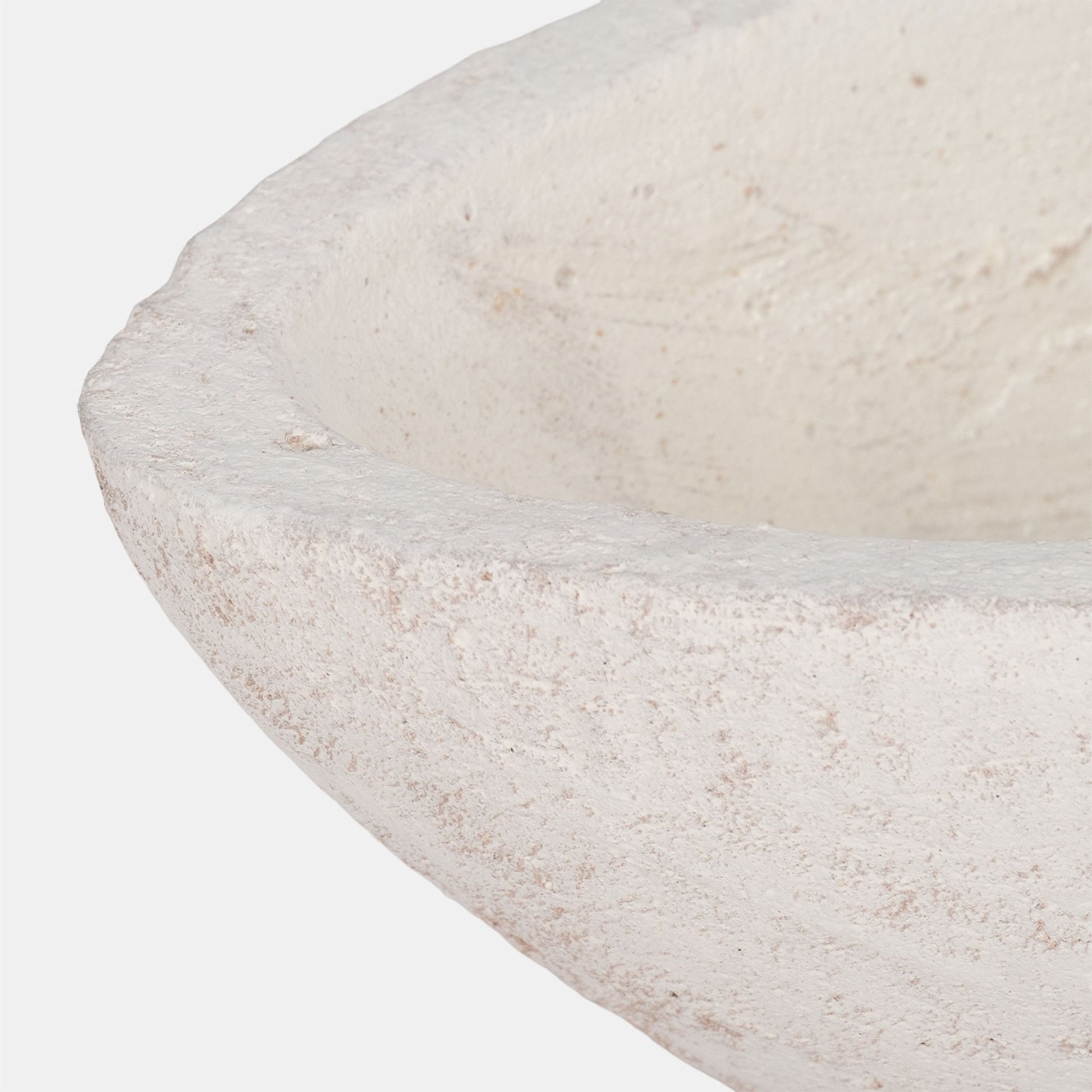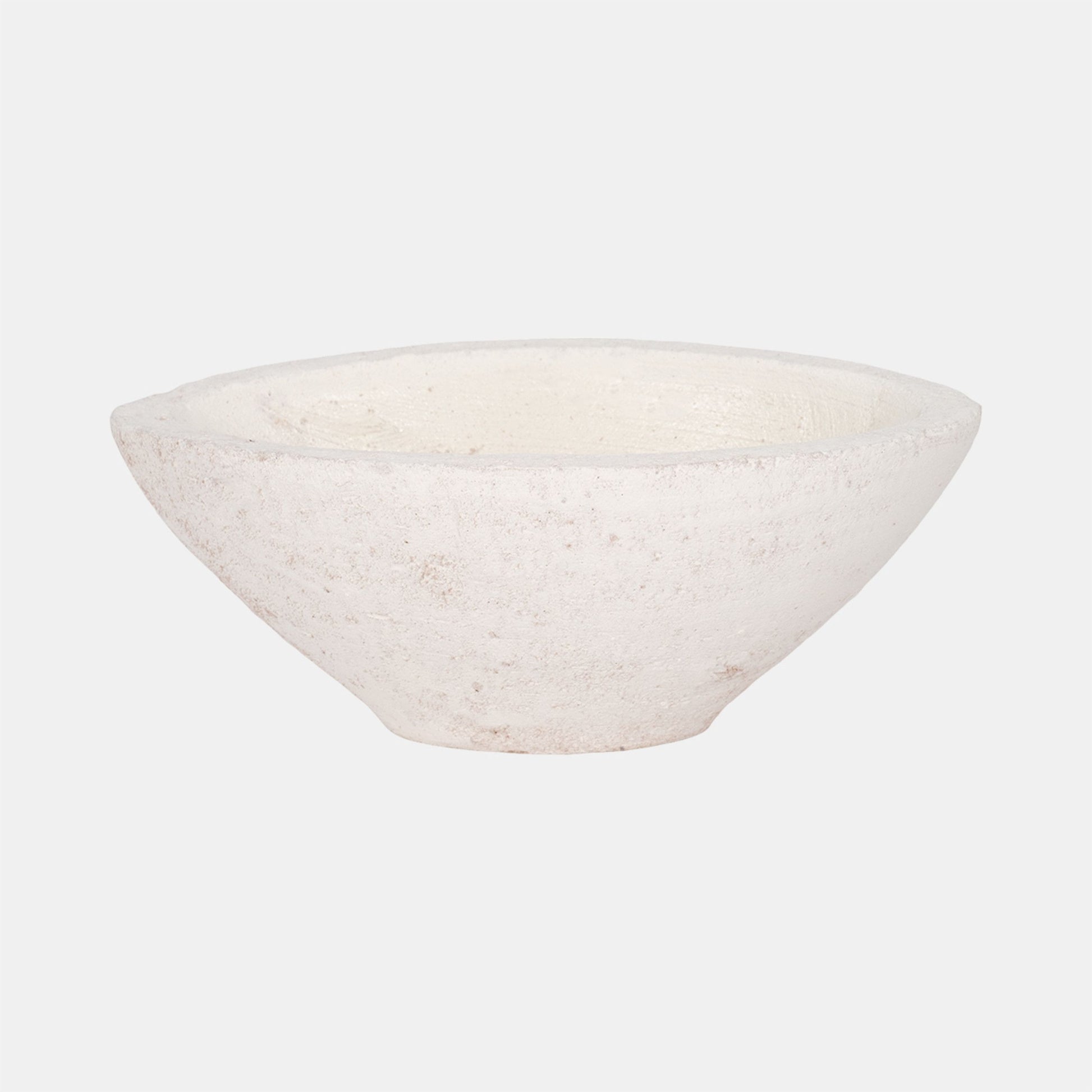 This bowl has a rough finish in white clay. Measures 4” H x 10” W x 6” D