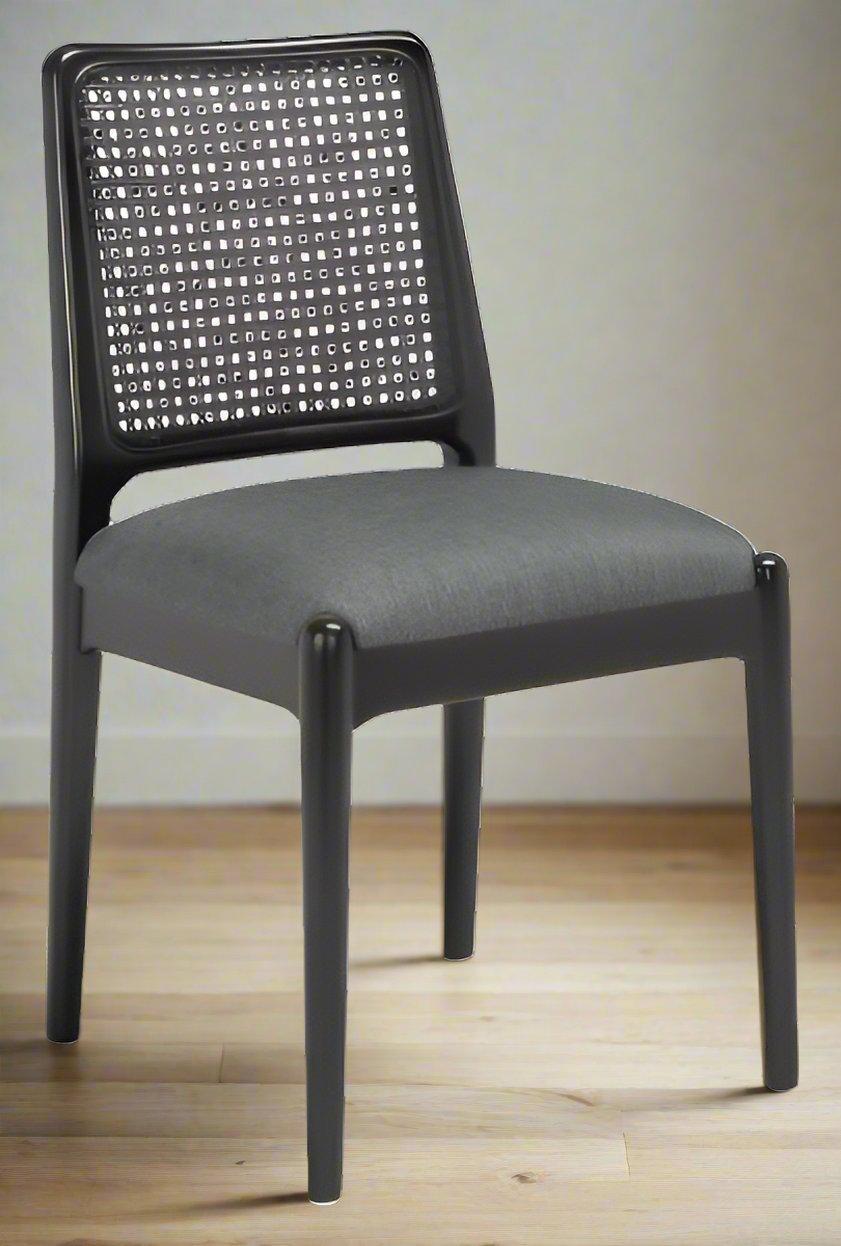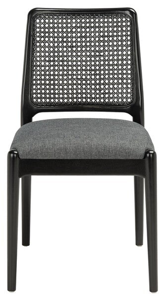 This Reinhardt Dining Chair brings a breezy, coastal feel to any contemporary interior. A plush grey cushion provides artistic tonal depth to Reinhardt’s black rattan details and matching wood frame. Works great as a desk or dining chair. Measures 19"W X 17.5"D X 32"H.