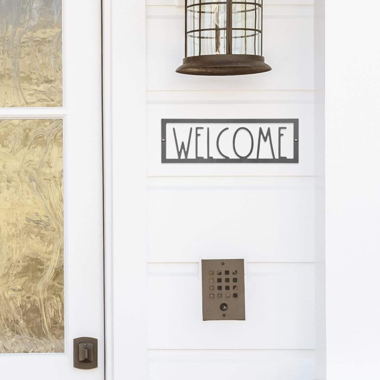 It's time for an upgrade from the old welcome sign. Metal welcome sign to personalize your entryway is where it's at! This metal sign is custom handcrafted in the USA. Raw steel is used so every sign is unique. We recommend sealing with your favorite spray paint or clear finish, as rusting can occur if left outdoors or in humid areas. (Some people let them rust for an extra vintage look!) Material: Sanded steel. Edges can sometimes be sharp. Hanging hardware not included.