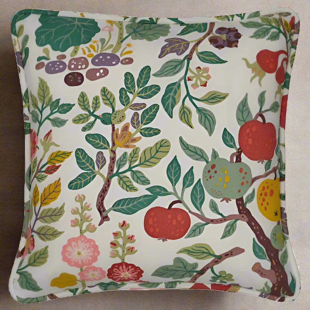 Enhance your space with this colourful floral cushion cover made from a durable cotton/linen blend, inspired by a charming garden landscapes.
