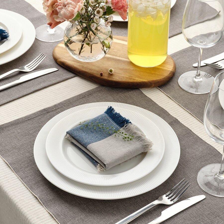 These Two-Tone grey / dark blue Dining Napkins are perfect for elevating any table setting, whether for everyday use or special occasions. Made with a blend of cotton and jute, they are both durable and soft to the touch and with easy washing, they can be used time and time again. Sold individually.