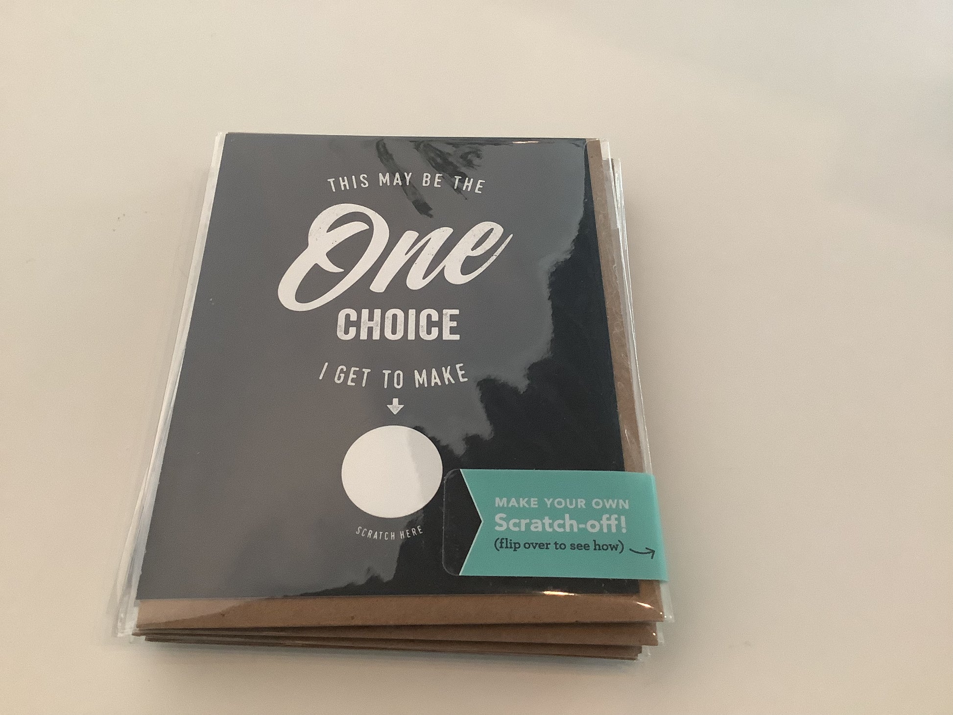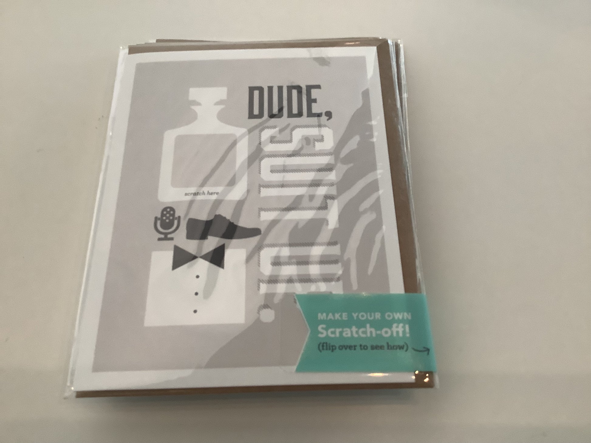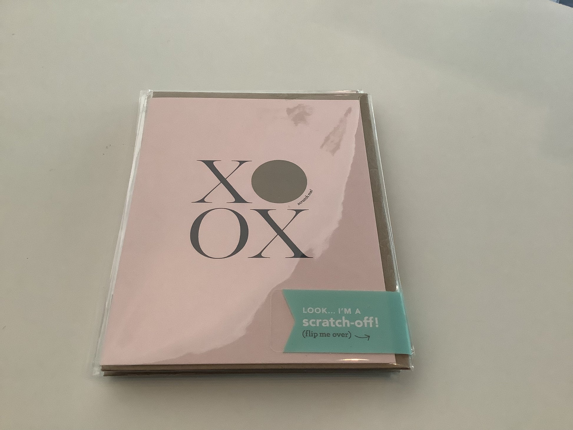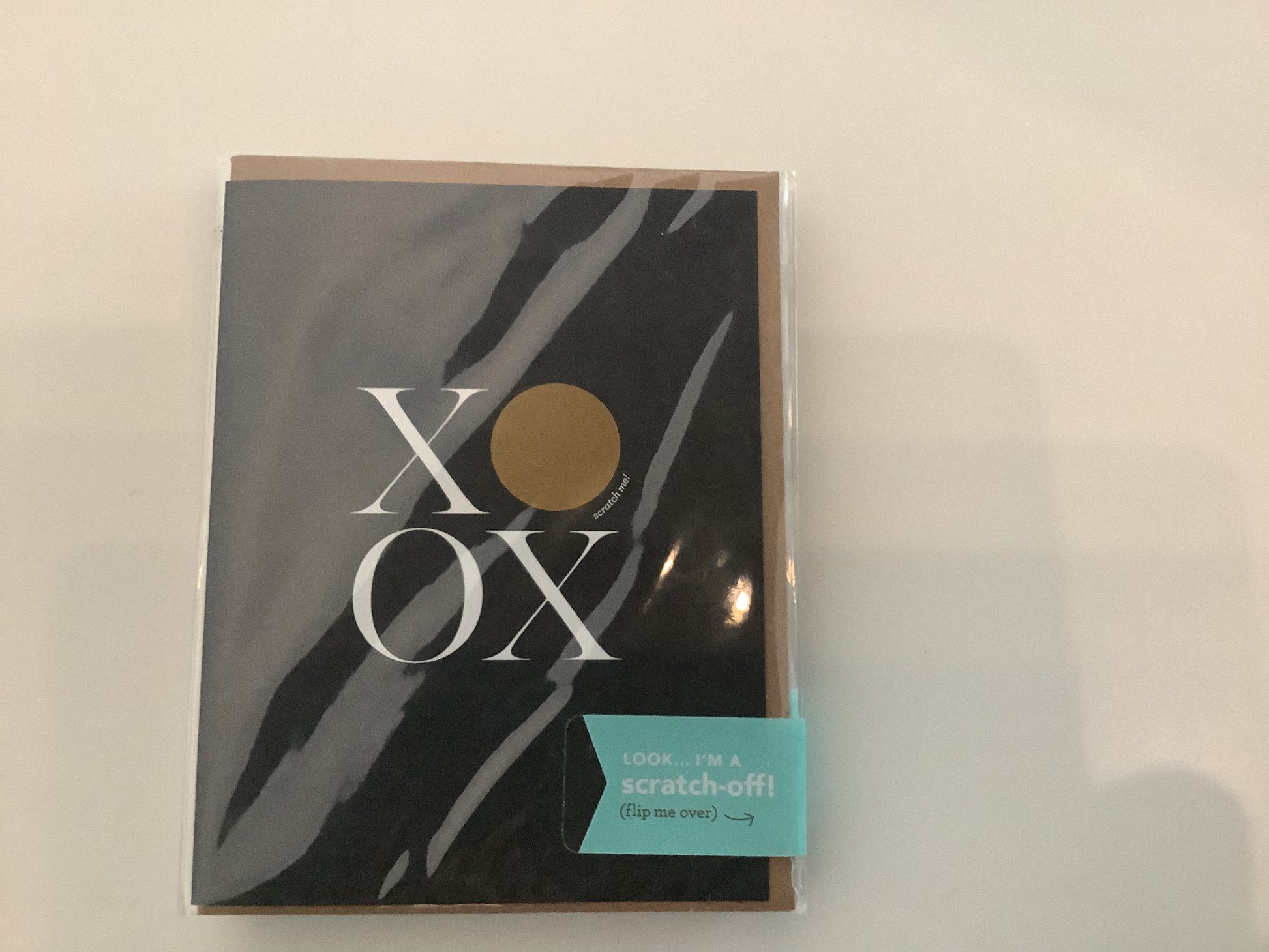 Make your own scratch-off card! Simply write your message in the space provided and cover it with the sticker (included). Scratching with a penny will reveal your surprise handwritten message. Features: Blank inside. Size: 4.25" x 5.5"