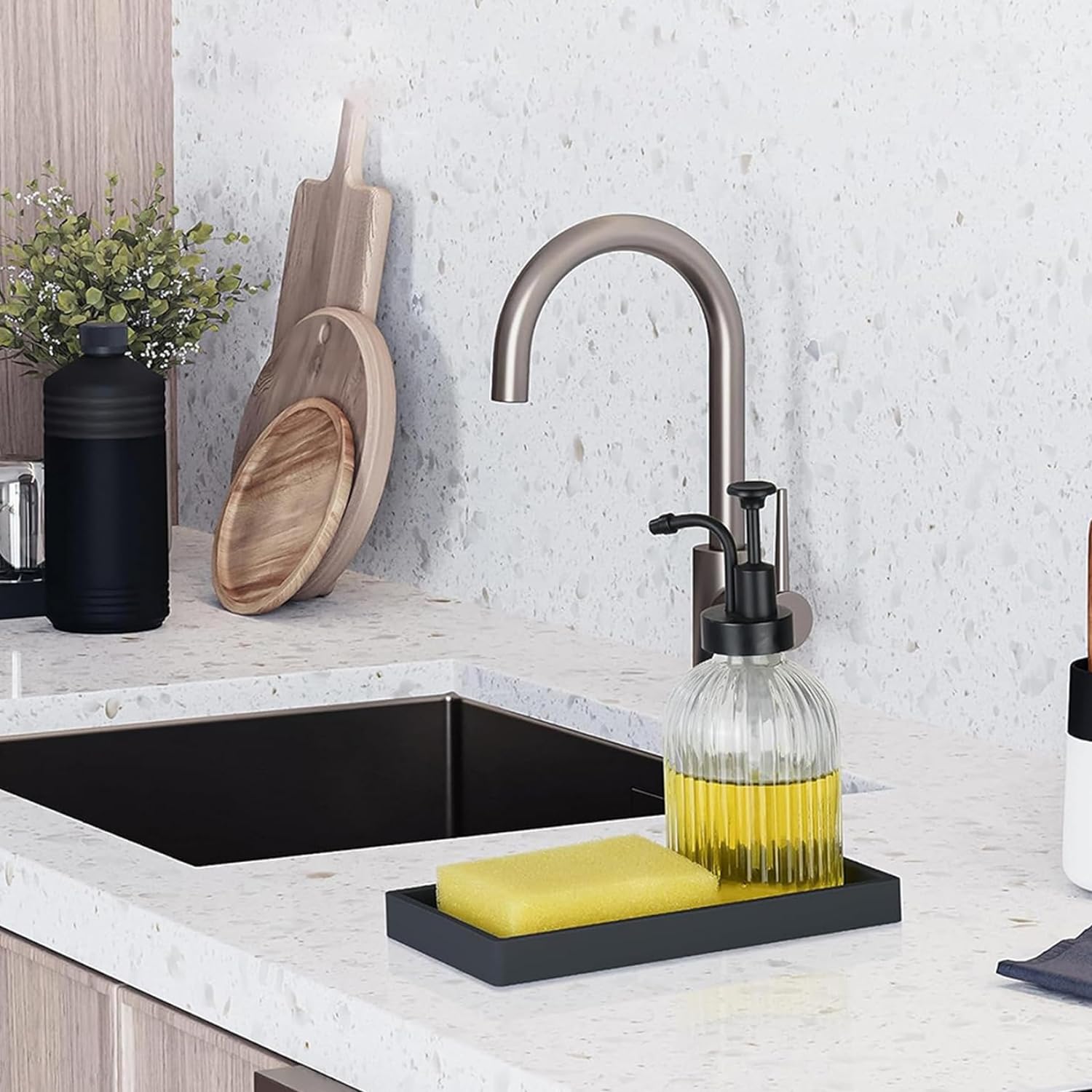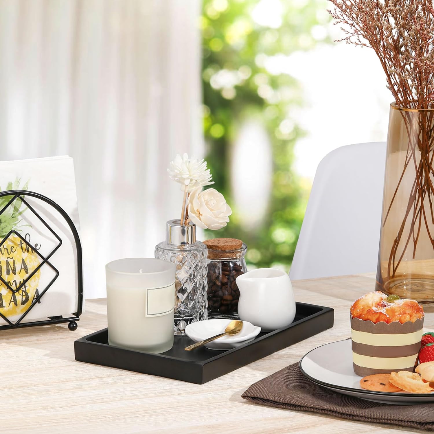 Our silicone vanity trays are durable and easy to clean with a quick wipe. They come in a stylish color and compact size, perfect for organizing small items in minimalist spaces. Elevate the aesthetics of your bathroom with our versatile tray that can be used in various places. Measures 7 3/4" x 3 7/8.