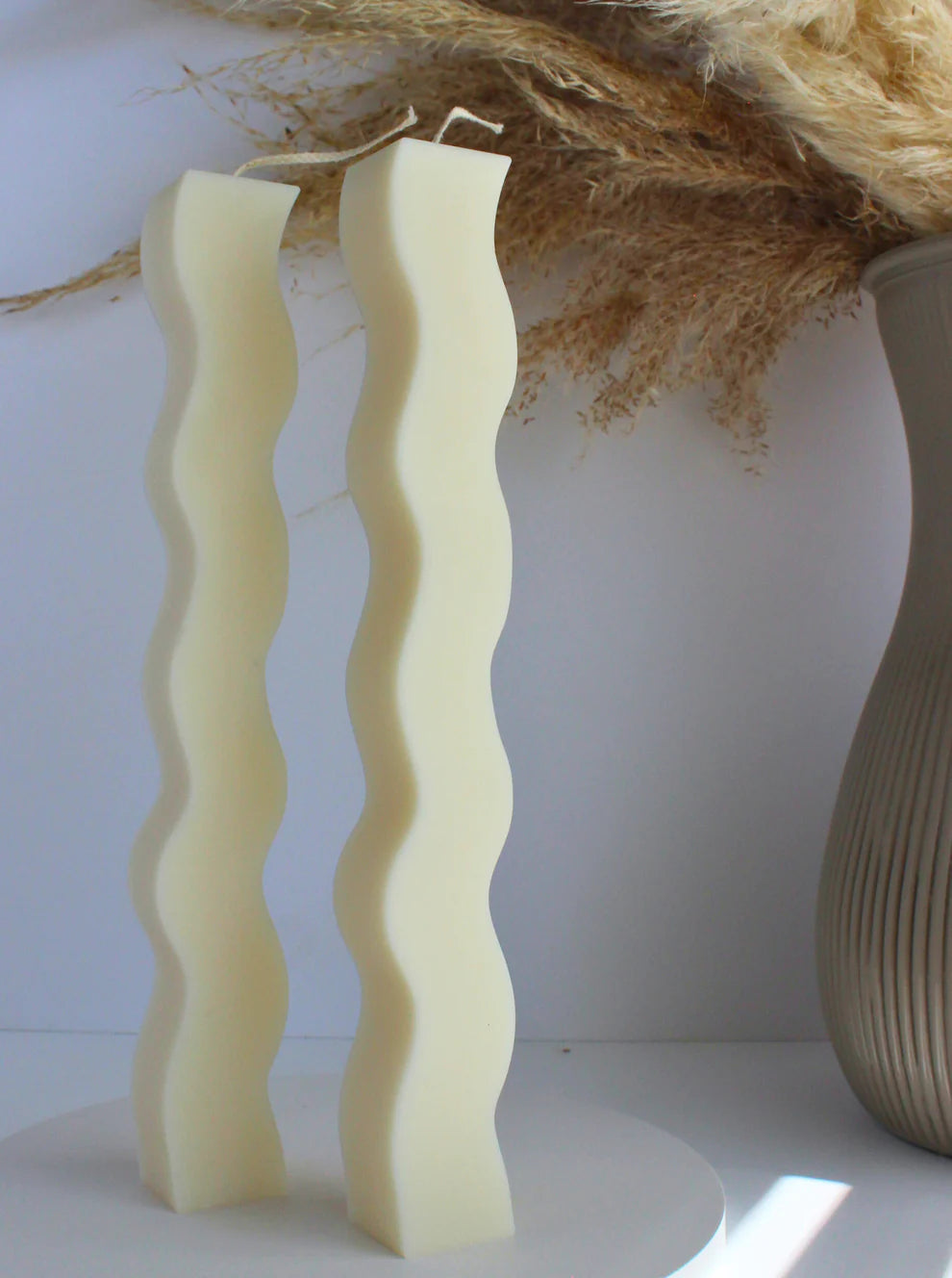 Reminiscent of the gentle movement of the sea, our wavy pillar candle puts a unique twist on the traditional pillar candle. It is sure to elevate your space with its soft curves and slender stature.
